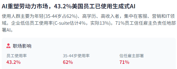 美国受访者中利用生成式AI的比例从2024年12月的30.1%跃升至2025年3-4月的43.2%,激发了美国圈的担心,